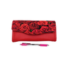 Accented by a black vinyl and red zipper.